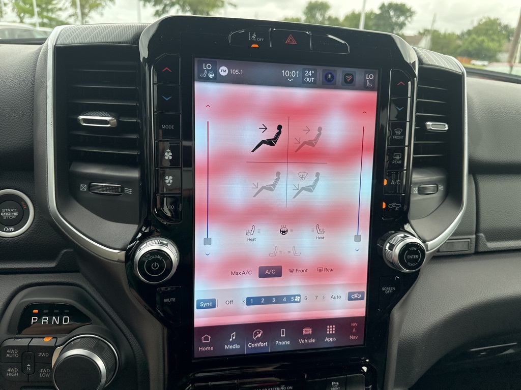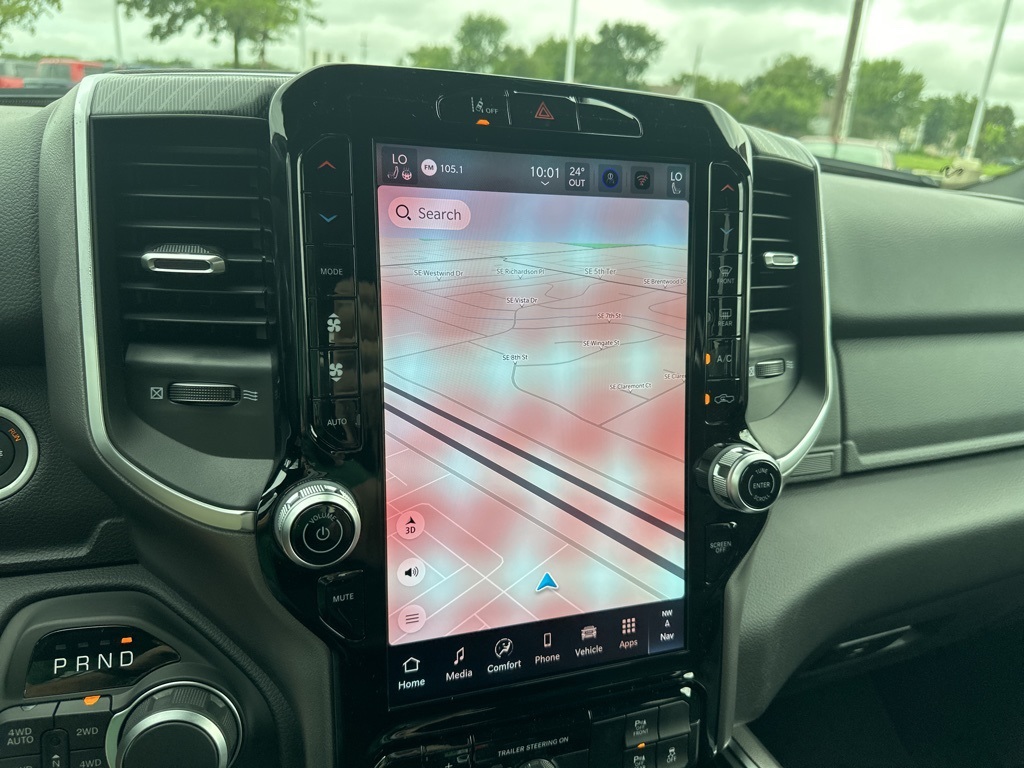 This stunning Diamond Black Crystal Pearlcoat Big Horn delivers serious capability with its Hurricane 3.0L twin-turbo I-6 engine producing 420HP, paired with part-time 4WD for any terrain. The 12-inch touchscreen with integrated navigation and wireless Apple CarPlay/Android Auto keeps you connected, while the 4G LTE Wi-Fi hotspot ensures everyone stays online.