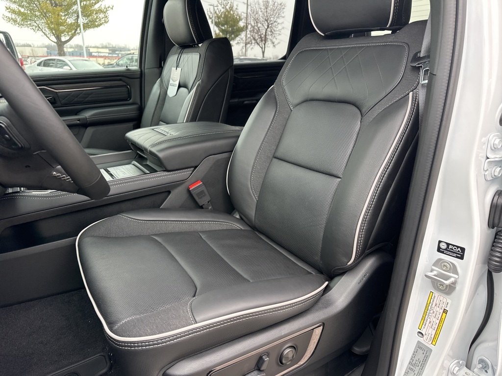 Luxury meets functionality with ventilated front and rear seats, heated steering wheel, and simulated suede and leather upholstery. The RamBox integrated storage and MOPAR retractable rear step maximize utility, while the power tailgate adds convenience.