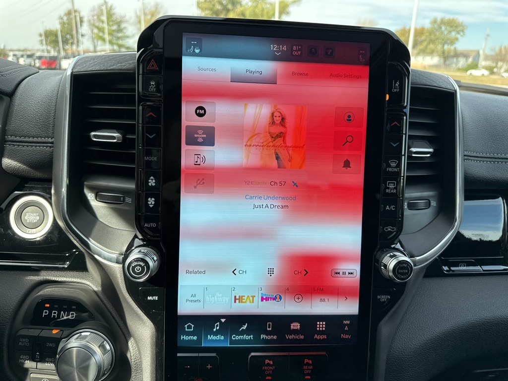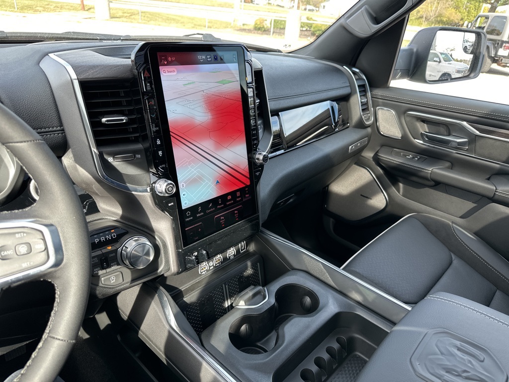 This premium crew cab pickup delivers serious capability with its legendary HEMI 5.7L V8 engine producing 395HP, paired with advanced part/full-time 4WD for any terrain. The Laramie trim elevates your drive with luxurious ventilated and heated leather seats, heated steering wheel, and a massive 14.4" touchscreen with integrated navigation.