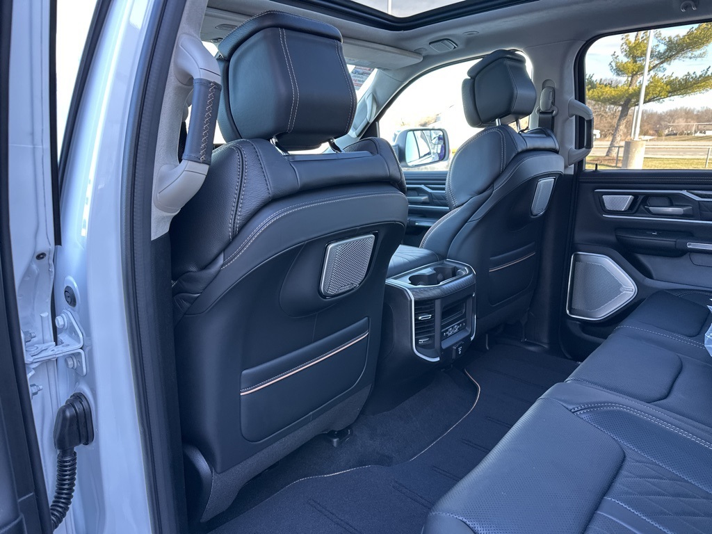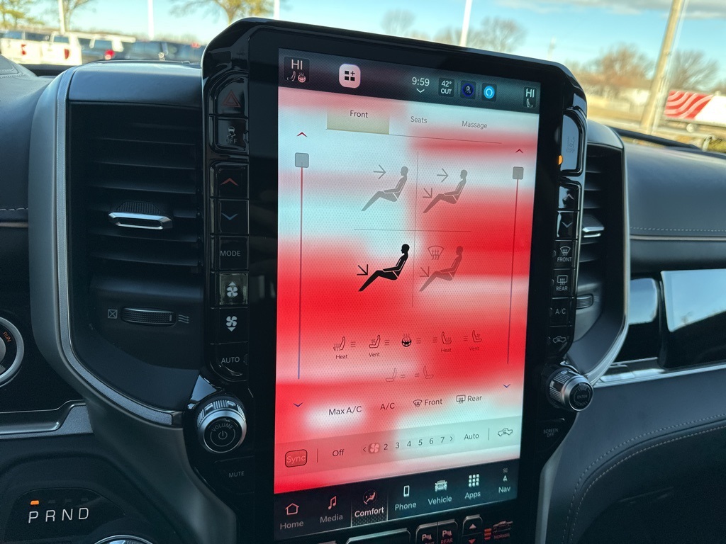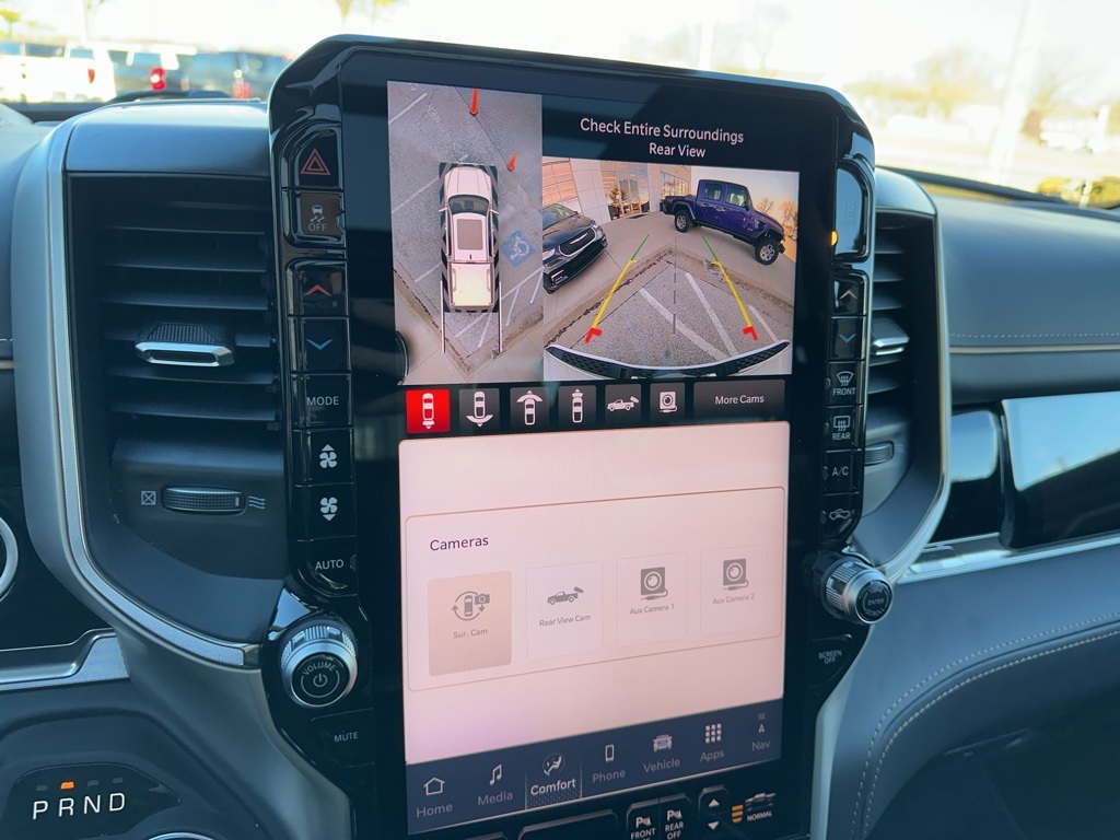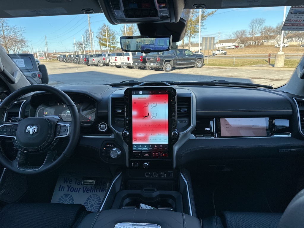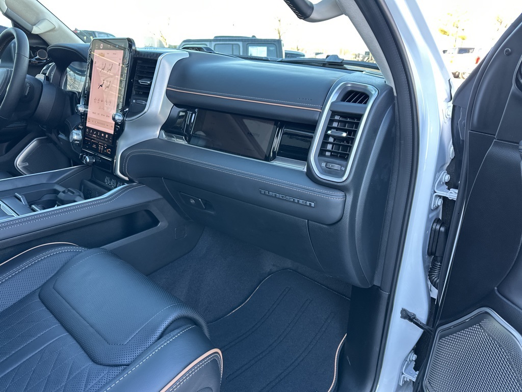 Tech enthusiasts will love the massive 14.4-inch touchscreen, integrated navigation with voice activation, wireless Apple CarPlay/Android Auto, and 4G LTE Wi-Fi hotspot. The dual-pane panoramic sunroof and RamBox integrated storage add functionality and style.