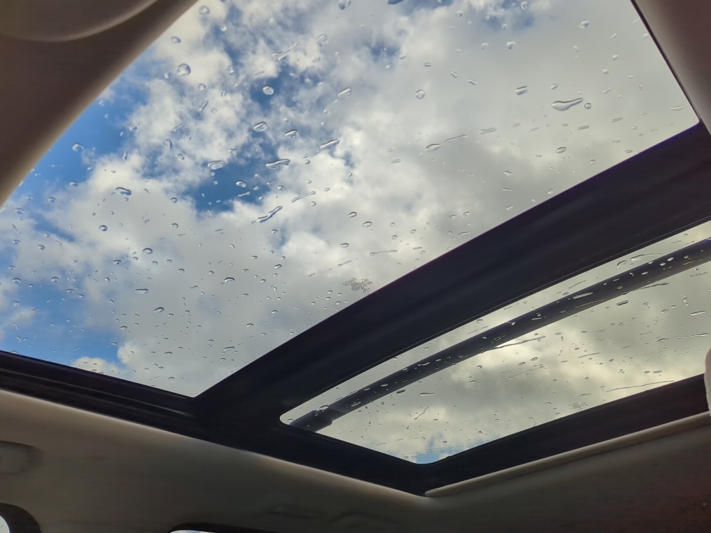 - First and second-row sliding and tilting glass sunroof with express open activation sunshade