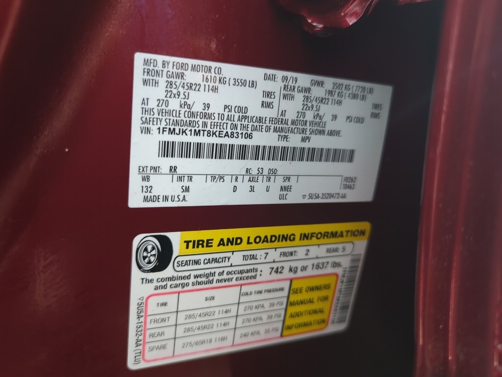 VIN 1FMJK1MT8KEA83106