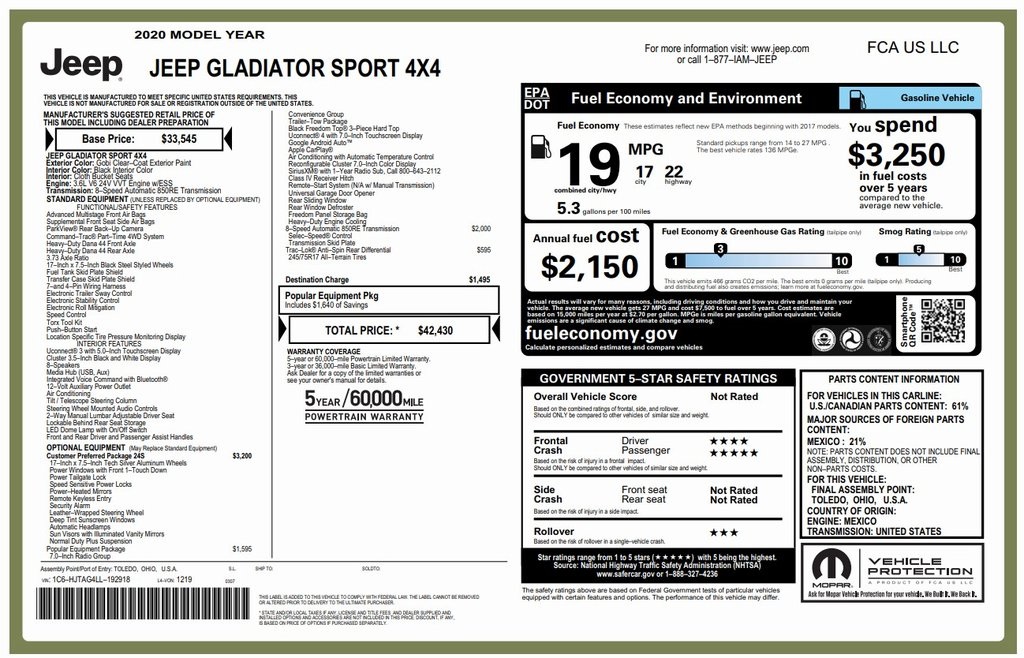Used 2020 Jeep Gladiator Sport Crew Cab