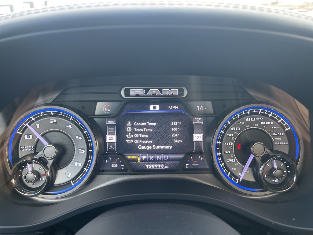 Uconnect 12.0-Inch Navigation: A massive, tablet-style vertical touchscreen that is the centerpiece of the Ram's high-tech cabin.