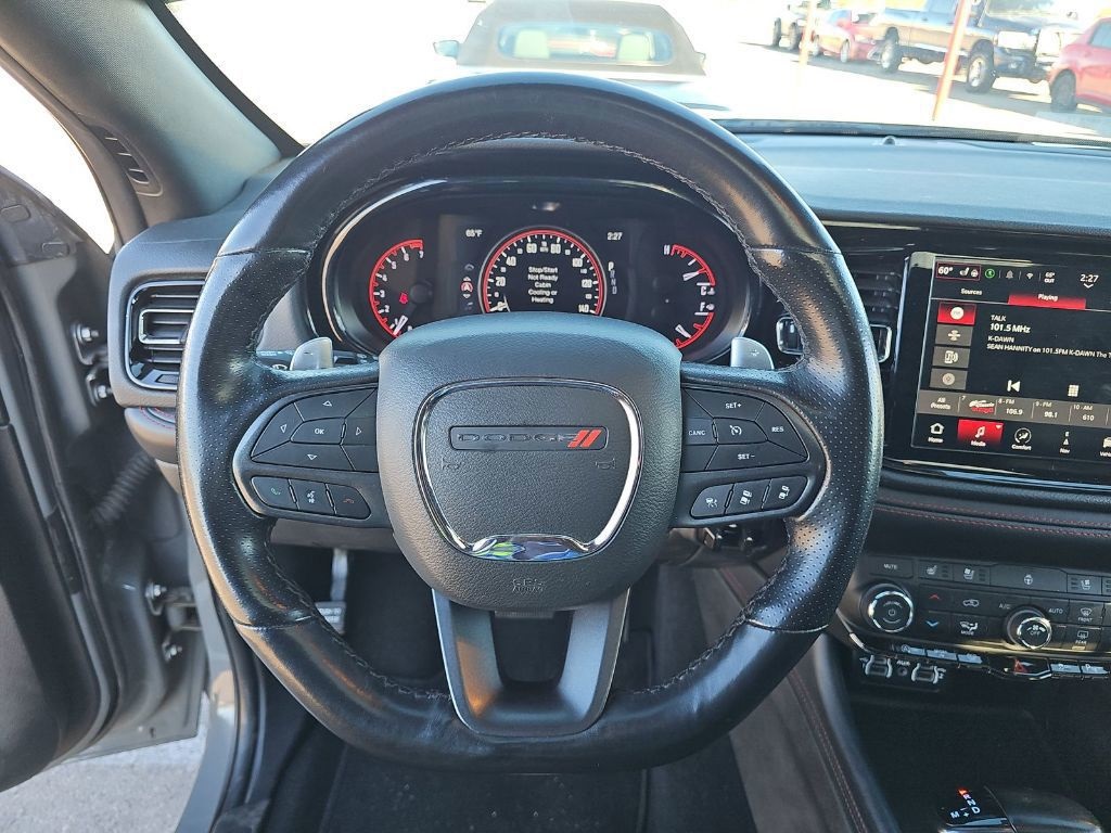 Dodge Durango GT Plus AWD, 1-Year Trial (Registration Required), 10.1" Touchscreen Display, 115V Auxiliary Power Outlet, 180 Amp Alternator, 4G LTE Wi-Fi Hot Spot, 7 & 4 Pin Wiring Harness, Adaptive Cruise Control w/Stop, Apple CarPlay, Auto-Dimming Exterior Driver Mirror, Black Roof Rails, Class IV Receiver Hitch, Connected Travel & Traffic Services, Disassociated Touchscreen Display, Dual Remote USB Port - Charge Only, Exterior Mirrors w/Heating Element, Exterior Mirrors w/Memory, Exterior Mirrors w/Supplemental Signals, Floor Console w/Leather Armrest, Full Speed Forward Collision Warning Plus, Gloss Black Exterior Mirrors, Google Android Auto, GPS Antenna Input, GPS Navigation, HD Radio, Heated front seats, Heated Second Row Seats, Heavy-Duty Engine Cooling, Integrated Center Stack Radio, Integrated Roof Rail Crossbars, Integrated Voice Command w/Bluetooth, Leather Trimmed Bucket Seats, Leather Wrapped Door Panels, LED Auxiliary Low Beam & Turn Signal, Power 6x9 Multi-Function Foldaway Mirrors, Power 8-Way Driver Memory 8-Way Passenger Seats, Power driver seat, Power Driver/Passenger 4-Way Lumbar Adjust, Power Liftgate, Power Sunroof, Power Tilt & Telescopic Steering Column, Premium LED Fog Lamps, Quick Order Package 2BG GT Plus, Radio: Uconnect 5 Nav w/10.1" Display, Radio/Driver Seat/Mirrors Memory, Rear Load Leveling Suspension, Red Accent Stitching, SiriusXM Guardian - Included Trial (B), SiriusXM w/360L, Steering wheel mounted audio controls, Trailer Brake Control, USB Host Flip, Ventilated Front Seats. CARFAX One-Owner.