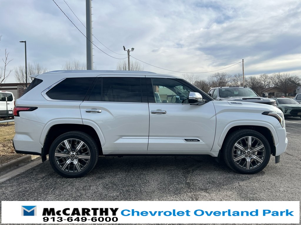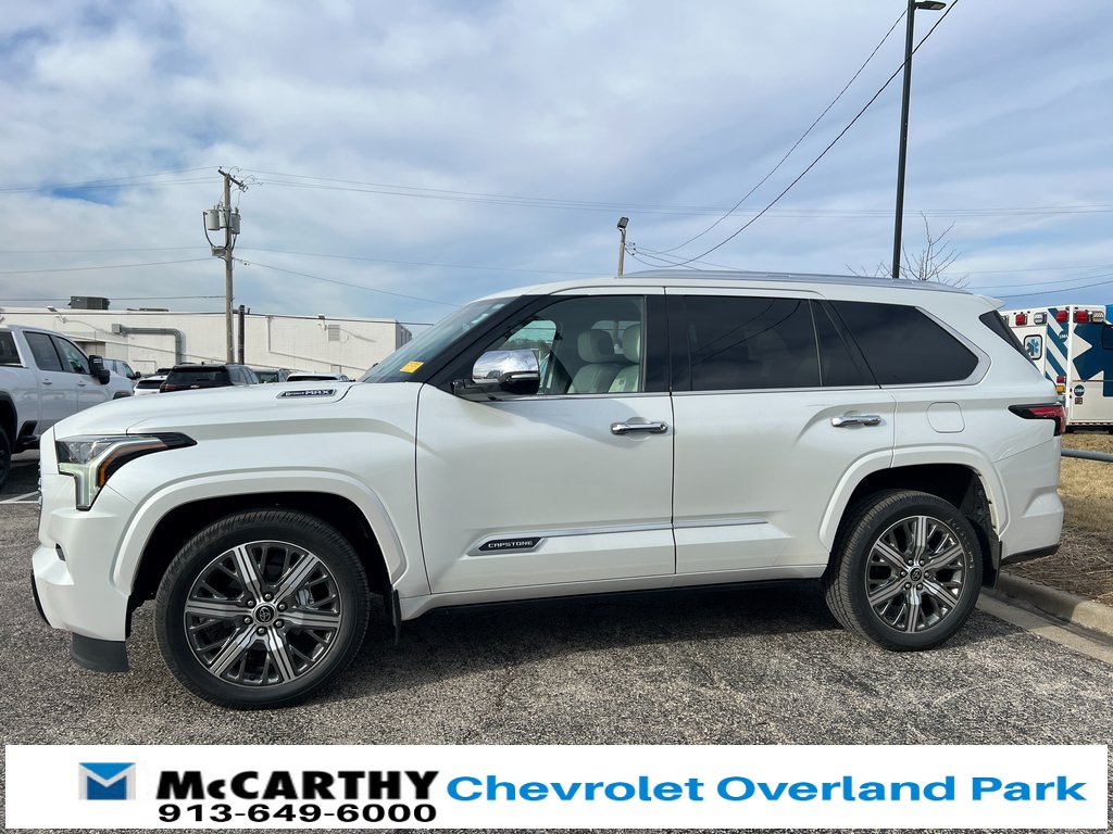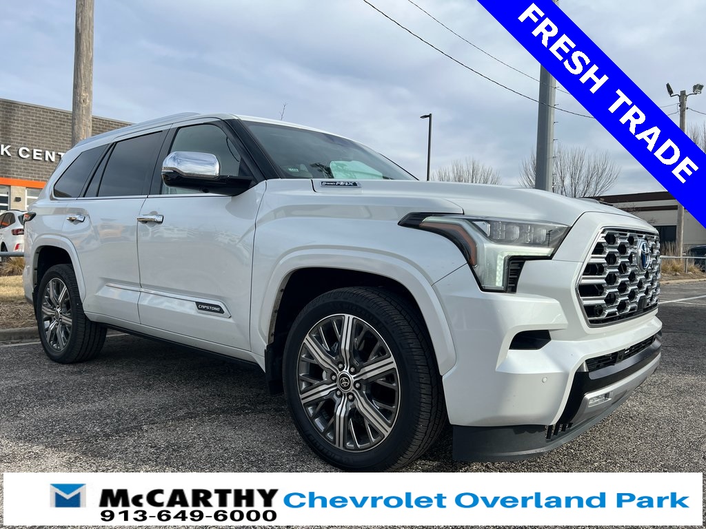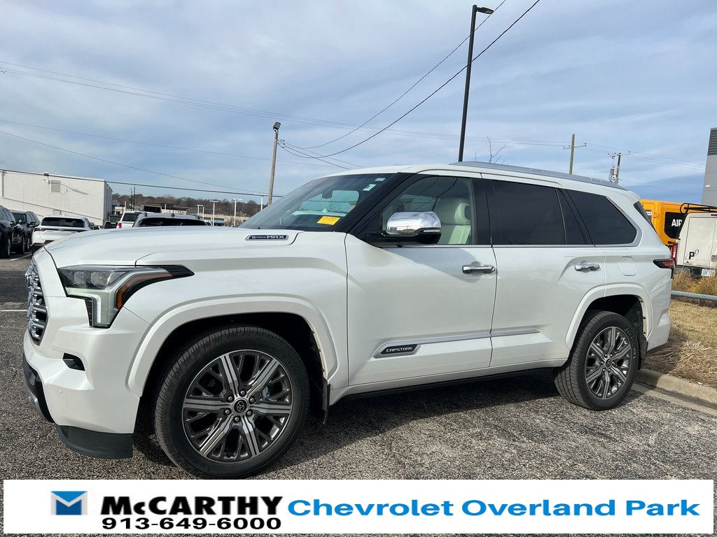 Toyota Sequoia Capstone V6 Hybrid, 10-Speed Automatic, 4WD, Automatic Power Extending Running Boards, Capstone, Head Up Display (HUD), Heads-Up Display, Heated & Ventilated Front Seats, Heated front seats, Heated Power Auto-Dimming Outside Mirrors, Heated rear seats, Memory seat, Navigation system: Drive Connect (1 year trial) includes Cloud Navigation with real time traffic and Google POI, Power driver seat, Power Liftgate, Power moonroof, Power passenger seat, Premium audio system: JBL, Radio: JBL Premium Audio System, Remote keyless entry, Steering wheel mounted audio controls, Ventilated front seats, Ventilated rear seats. CARFAX One-Owner.