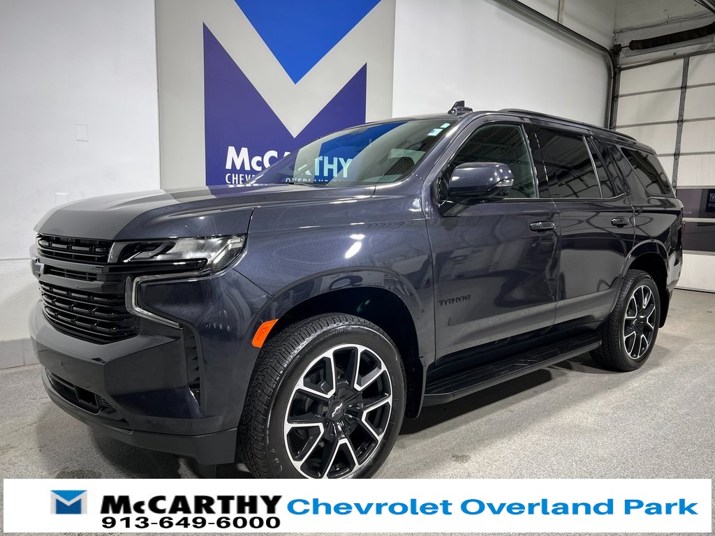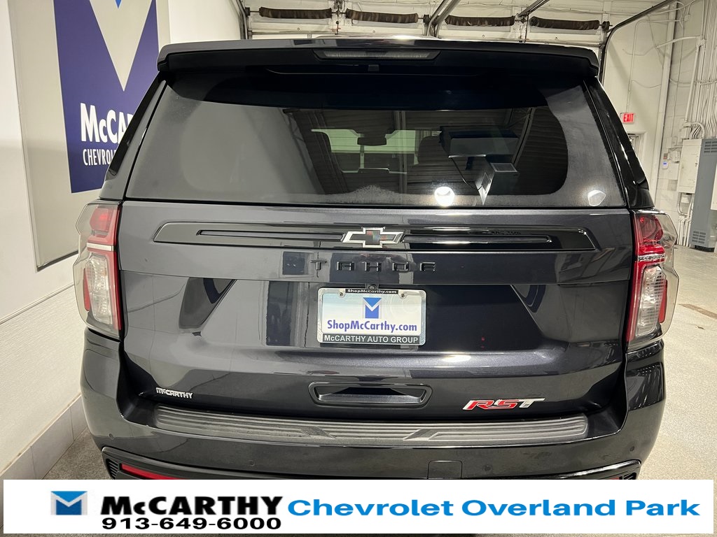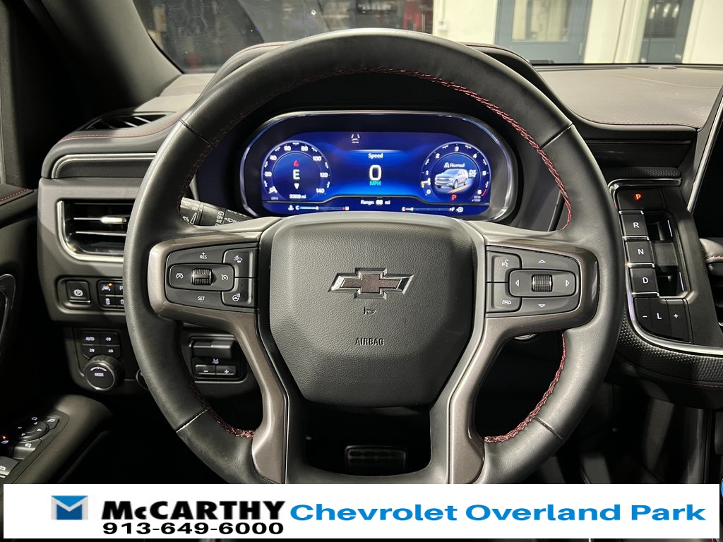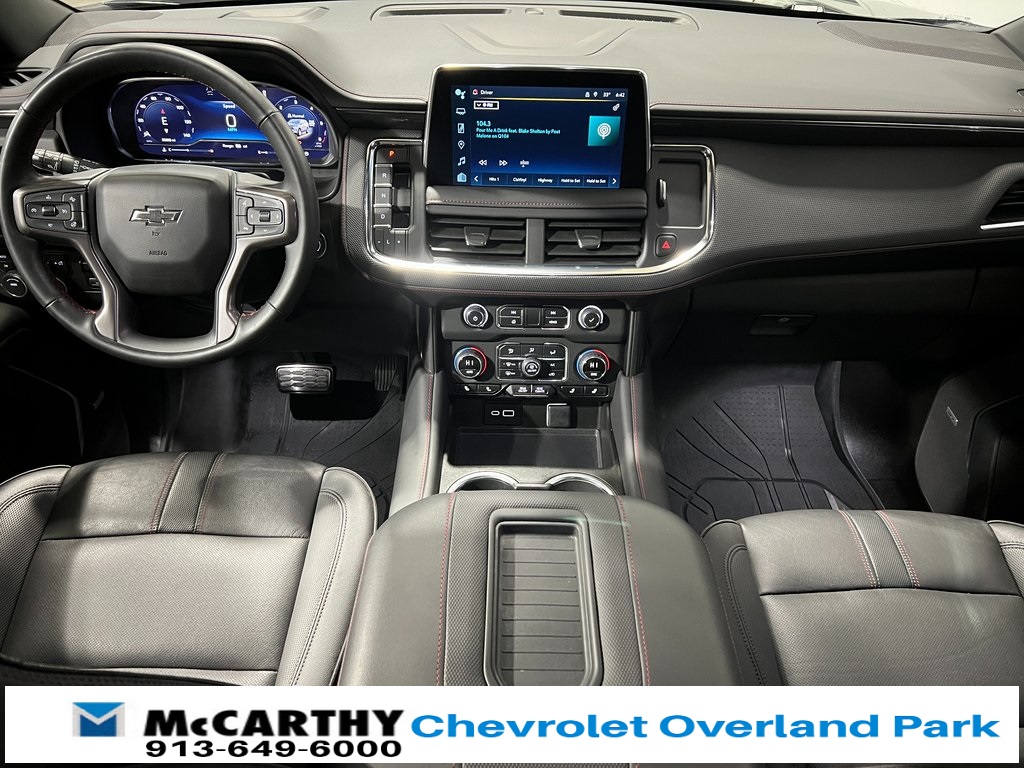 Chevrolet Tahoe RST 4WD, Jet Black/Victory Red w/Perforated Leather Seat Trim, 1st & 2nd Row Color-Keyed Carpeted Floor Mats, 2-Speed Active Electronic AutoTrac Transfer Case, 2nd Row Pwr Release 60/40 Split-Folding Bench Seat, 3rd Row 60/40 Power-Folding Split-Bench Seat, Adaptive Cruise Control, Advanced Trailering Package, Auto-Dimming Inside Rear-View Mirror, Bose 9-Speaker Stereo Audio System Feature, Bright Front & Rear Door Sill Plates, Color-Keyed Carpeting Floor Covering, Driver & Front Outboard Passenger Airbags, Driver Alert Package, Dual-Pane Power Panoramic Sunroof, Enhanced Automatic Emergency Braking, Enhanced Driver Information Center, Extra Capacity Cooling System, Floor Console w/Storage Area, Hands-Free Rear Power Programmable Liftgate, HD Surround Vision, Heated 2nd Row Outboard Seats, Heated Driver & Front Passenger Seats, Heated front seats, Heated Steering Wheel, Hitch View w/Pan/Zoom Image Adjustment, Integrated Trailer Brake Controller, Lane Change Alert w/Side Blind Zone Alert, LED Daytime Running Lamps, License Plate Front Mounting Package, Luxury Package, Max Trailering Package, Memory seat, Memory Settings, Memory Settings for Driver, Navigation System, Outside Heated Power-Adjustable Mirrors, Power driver seat, Power Liftgate, Power passenger seat, Power Tilt & Telescopic Steering Column, Preferred Equipment Group 1SP, Rear Cross Traffic Alert, Rear Pedestrian Alert, Remote Start, SiriusXM w/360L, Smart Trailer Integration Indicator, Steering wheel mounted audio controls, Universal Home Remote, Wireless Charging, Wrapped Steering Wheel. CARFAX One-Owner.