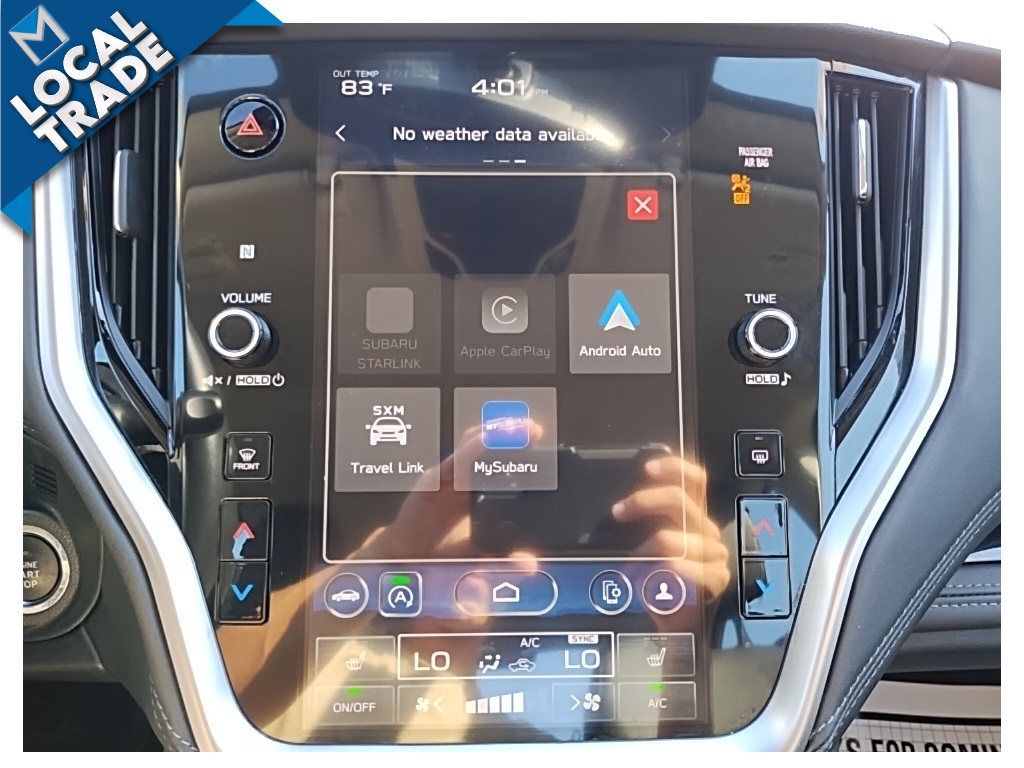 At the center, Subarus **11.6" STARLINK Multimedia Plus System** with **Harman Kardon premium audio** transforms your cabin into a mobile concert hall. With **HD Radio, SiriusXM (4-month trial), smartphone connectivity, and USB ports (4)**, entertainment and connection are effortless. The **auto-dimming rearview mirror with Compass & HomeLink**, **keyless access with push-button start**, and **power windows with all-window auto up/down** elevate daily convenience. Advanced touches like a **tilt/telescopic steering column with Bluetooth/audio switches** and a **leather-wrapped steering wheel and shift lever** remind you this is a sedan designed with purpose.