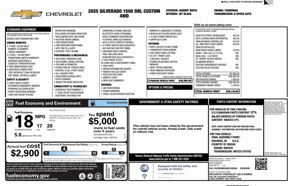 Based on 2025 EPA mileage ratings. Use for comparison purposes only. Your actual mileage will vary depending on how you drive and maintain your vehicle.