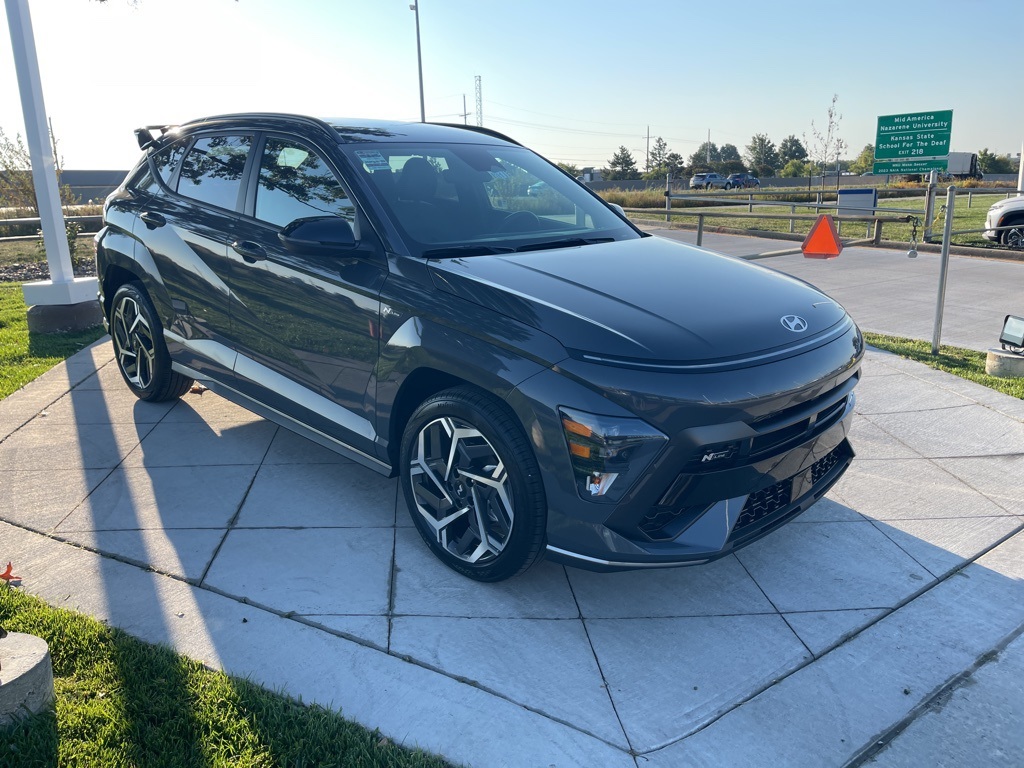 Certified. Ecotronic Gray Pearl 2025 Hyundai 4D Sport Utility Kona N Line S FWD 8-Speed Automatic I4 26/32 City/Highway MPG Clean CARFAX.
